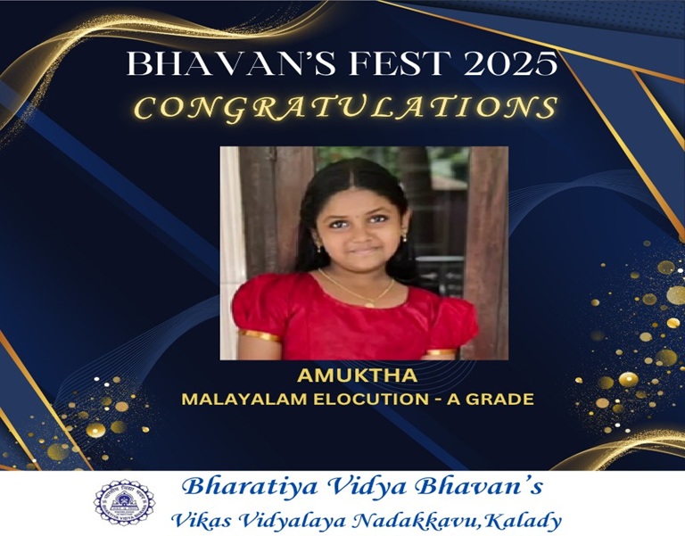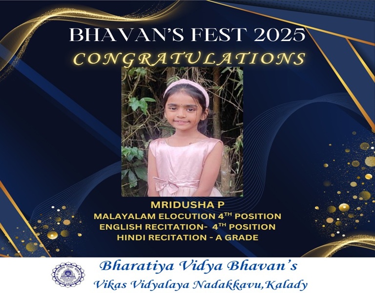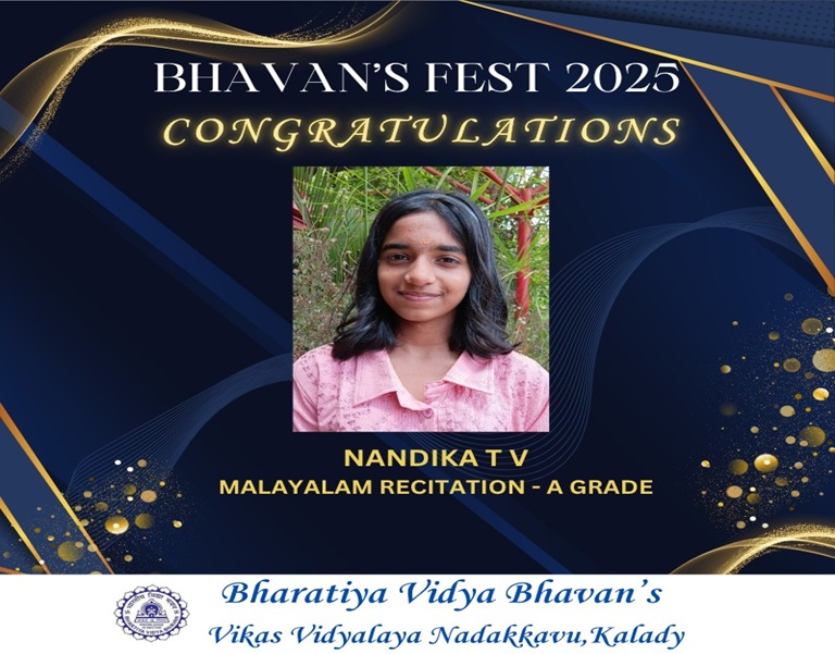 B V Bhavan's Vikas Vidyalaya-Ponnani Bhavans Campus, Nadakkavu, Kalady P.O. Malappuram Dist., KERALA - 679582